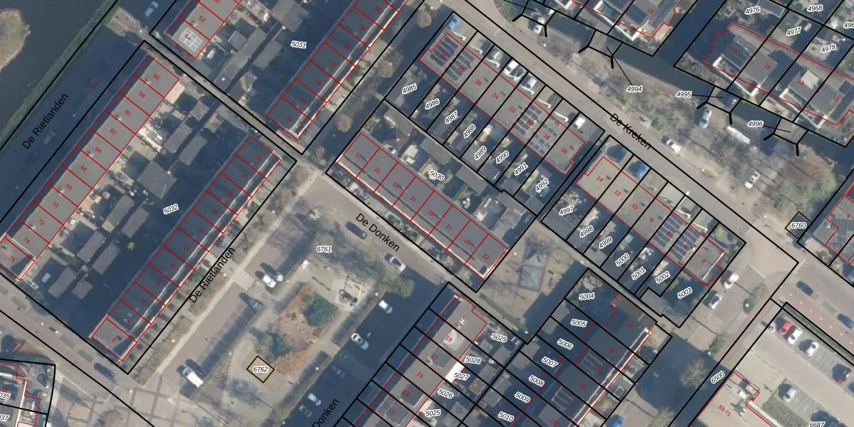 Het perceel waarop De Donken 29 staat heeft een oppervlakte van 1005 m². Dit is een zeer groot perceel. De perceeloppervlakte wordt geregistreerd door het Kadaster. Gedetailleerde informatie over de maten van dit perceel kunt u vinden in het rapport Kadastrale kaart met maatvoering van De Donken 29.
