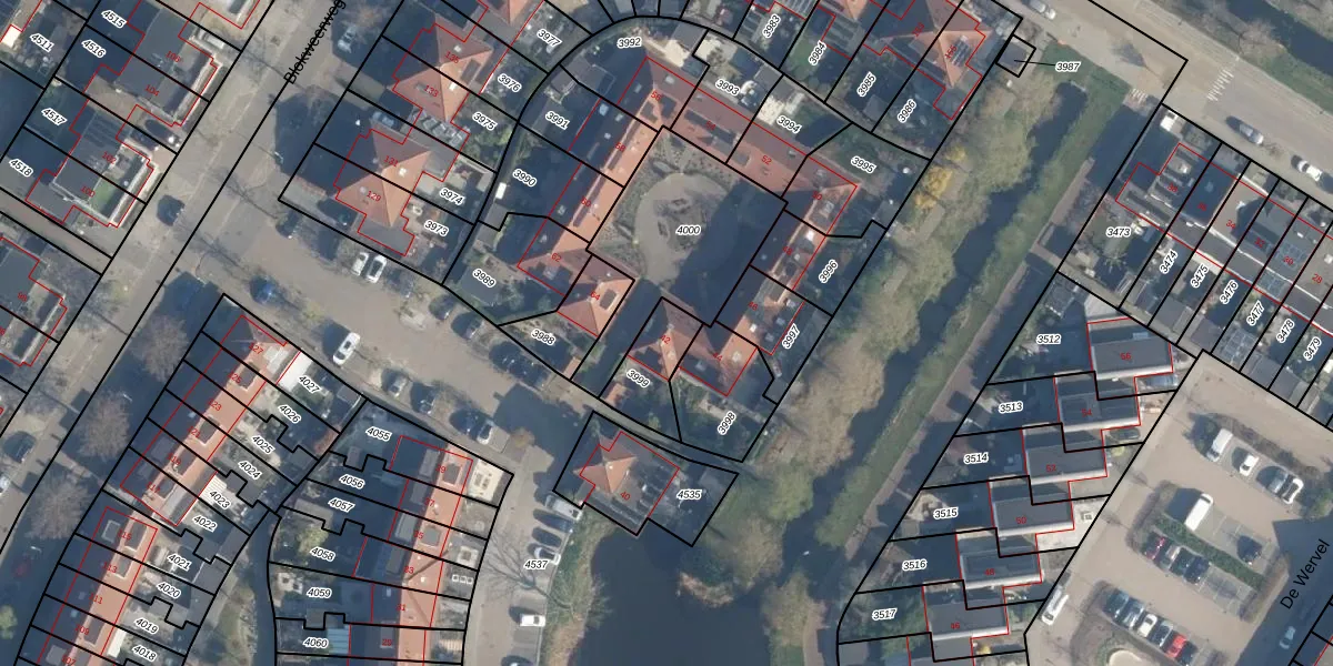 Gebruik de zoekbalk of klik op een perceel voor informatie over de adressen binnen dit perceel.
