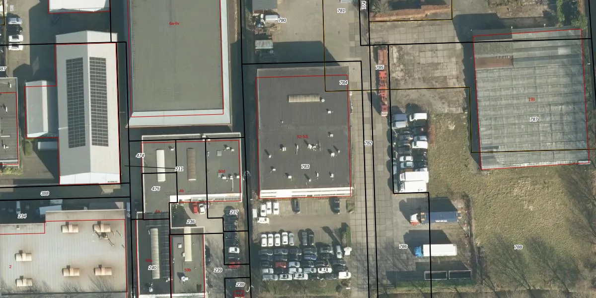 Het perceel waarop Edisonweg 52-h staat heeft een oppervlakte van 3059 m². Dit is een zeer groot perceel. De perceeloppervlakte wordt geregistreerd door het Kadaster. Gedetailleerde informatie over de maten van dit perceel kunt u vinden in het rapport Kadastrale kaart met maatvoering van Edisonweg 52-h.