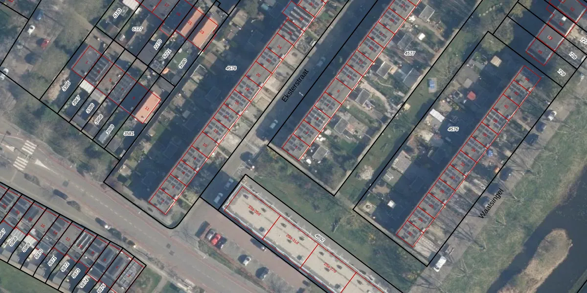 Eksterstraat 1 is gelegen op kadastraal perceel ABS01C4577. Deze kadastrale aanduiding is uniek en wordt gebruikt door het Kadaster om eigendomsrechten en andere zakelijke rechten vast te leggen. Het perceel maakt onderdeel uit van de kadastrale gemeente Alblasserdam.