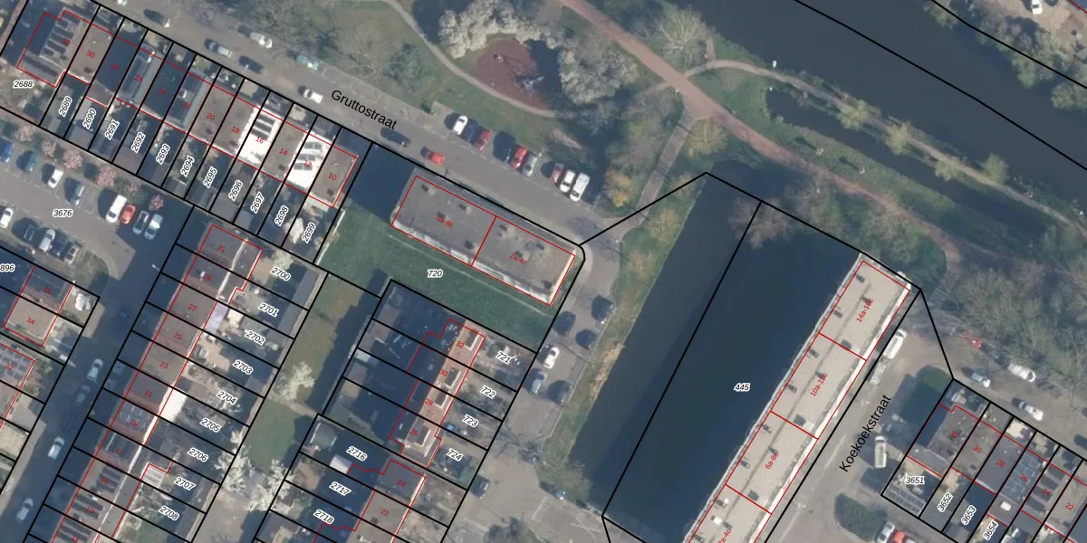 Het perceel waarop Gruttostraat 2-a staat heeft een oppervlakte van 1005 m². Dit is een zeer groot perceel. De perceeloppervlakte wordt geregistreerd door het Kadaster. Gedetailleerde informatie over de maten van dit perceel kunt u vinden in het rapport Kadastrale kaart met maatvoering van Gruttostraat 2-a.