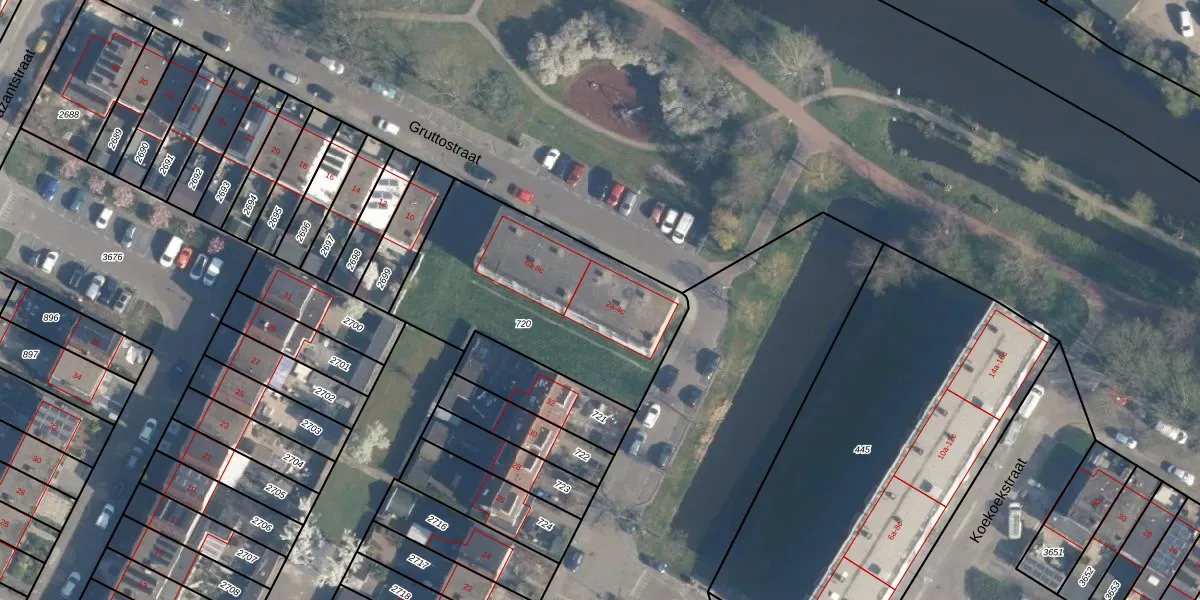 Het perceel waarop Gruttostraat 4-a staat heeft een oppervlakte van 1005 m². Dit is een zeer groot perceel. De perceeloppervlakte wordt geregistreerd door het Kadaster. Gedetailleerde informatie over de maten van dit perceel kunt u vinden in het rapport Kadastrale kaart met maatvoering van Gruttostraat 4-a.