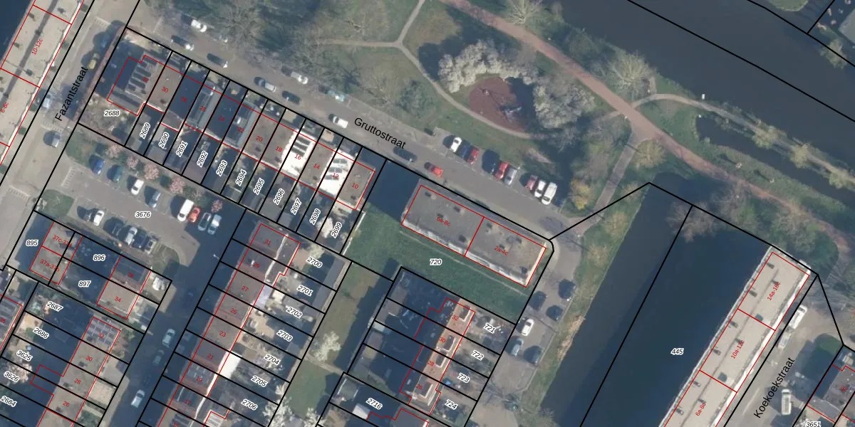 Het perceel waarop Gruttostraat 8-b staat heeft een oppervlakte van 1005 m². Dit is een zeer groot perceel. De perceeloppervlakte wordt geregistreerd door het Kadaster. Gedetailleerde informatie over de maten van dit perceel kunt u vinden in het rapport Kadastrale kaart met maatvoering van Gruttostraat 8-b.
