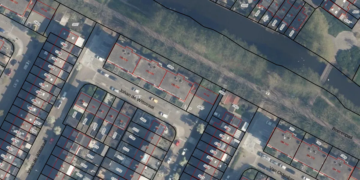 Het perceel waarop Johan de Wittstraat 53-c staat heeft een oppervlakte van 1073 m². Dit is een zeer groot perceel. De perceeloppervlakte wordt geregistreerd door het Kadaster. Gedetailleerde informatie over de maten van dit perceel kunt u vinden in het rapport Kadastrale kaart met maatvoering van Johan de Wittstraat 53-c.