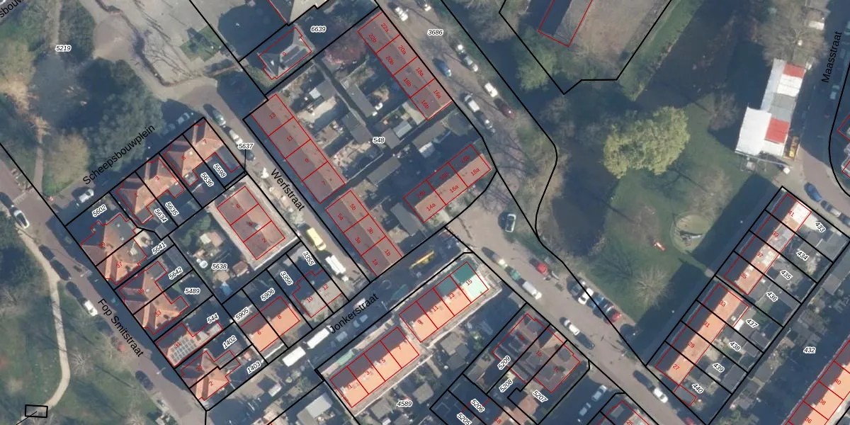 Het perceel waarop Jonkerstraat 14-a staat heeft een oppervlakte van 2062 m². Dit is een zeer groot perceel. De perceeloppervlakte wordt geregistreerd door het Kadaster. Gedetailleerde informatie over de maten van dit perceel kunt u vinden in het rapport Kadastrale kaart met maatvoering van Jonkerstraat 14-a.