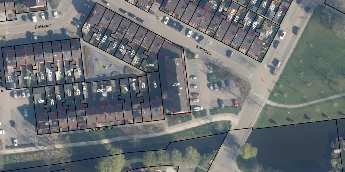 Het perceel waarop Kalmoes 24 staat heeft een oppervlakte van 637 m². Dit is een groot perceel. De perceeloppervlakte wordt geregistreerd door het Kadaster. Gedetailleerde informatie over de maten van dit perceel kunt u vinden in het rapport Kadastrale kaart met maatvoering van Kalmoes 24.