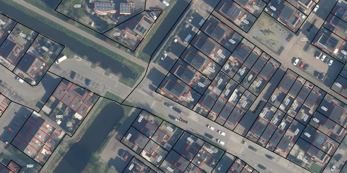 Gebruik de zoekbalk of klik op een perceel voor informatie over de adressen binnen dit perceel.