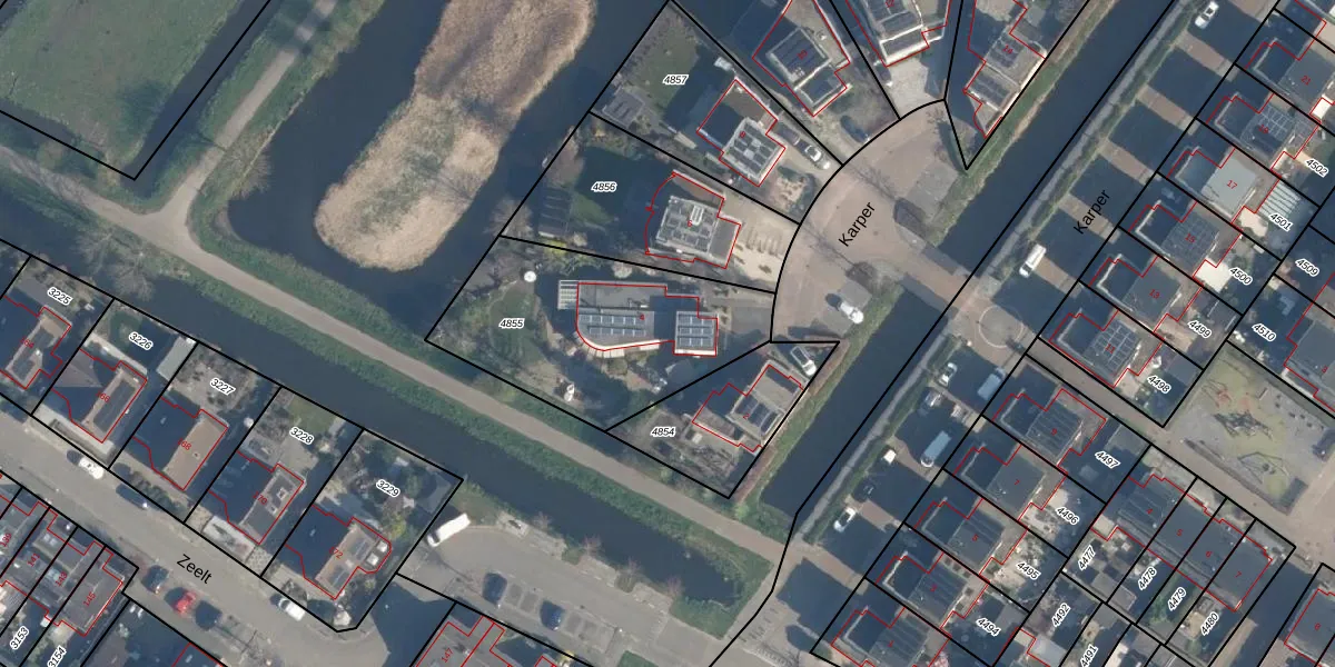 Het perceel waarop Karper 4 staat heeft een oppervlakte van 920 m². Dit is een groot perceel. De perceeloppervlakte wordt geregistreerd door het Kadaster. Gedetailleerde informatie over de maten van dit perceel kunt u vinden in het rapport Kadastrale kaart met maatvoering van Karper 4.