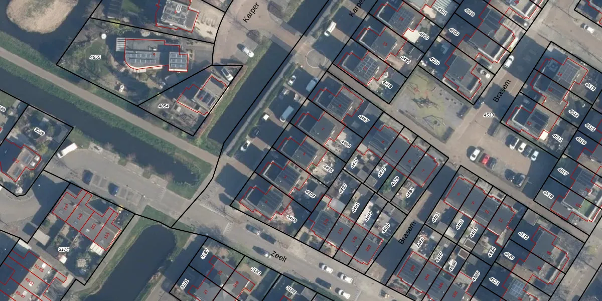 Gebruik de zoekbalk of klik op een perceel voor informatie over de adressen binnen dit perceel.