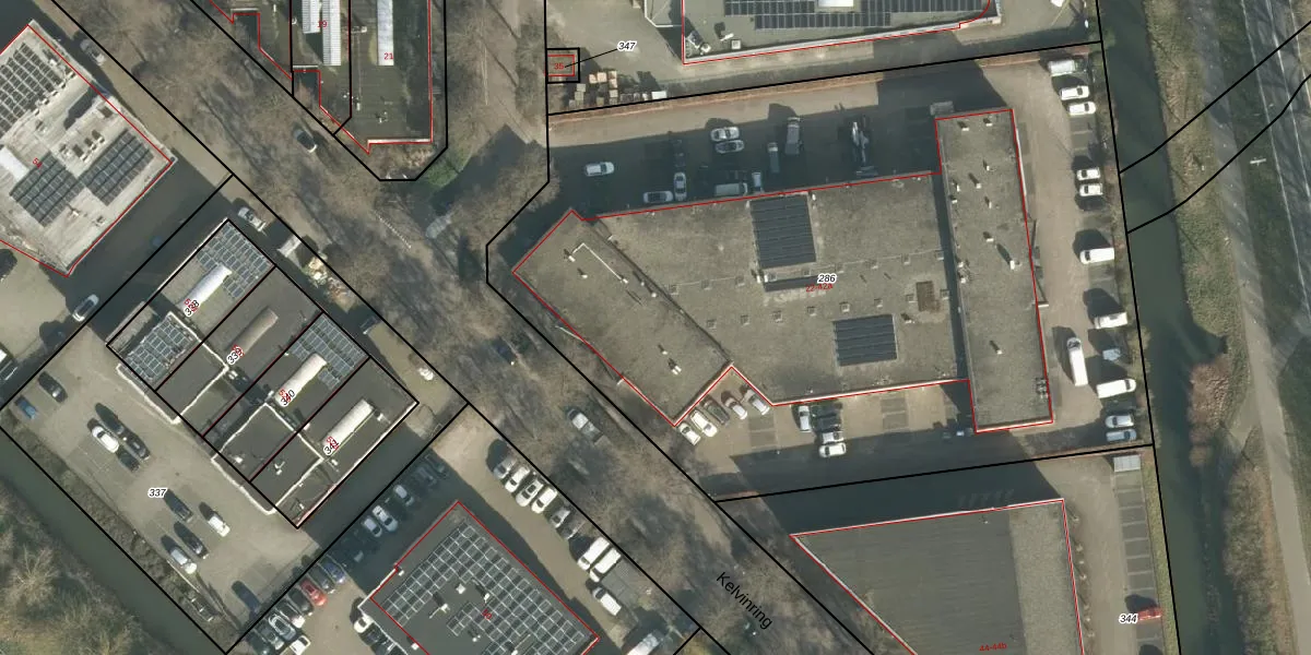 Het perceel waarop Kelvinring 22 staat heeft een oppervlakte van 5305 m². Dit is een zeer groot perceel. De perceeloppervlakte wordt geregistreerd door het Kadaster. Gedetailleerde informatie over de maten van dit perceel kunt u vinden in het rapport Kadastrale kaart met maatvoering van Kelvinring 22.