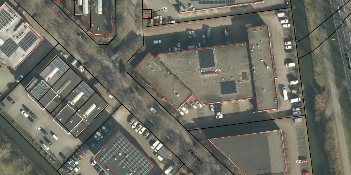Het perceel waarop Kelvinring 24 staat heeft een oppervlakte van 5305 m². Dit is een zeer groot perceel. De perceeloppervlakte wordt geregistreerd door het Kadaster. Gedetailleerde informatie over de maten van dit perceel kunt u vinden in het rapport Kadastrale kaart met maatvoering van Kelvinring 24.