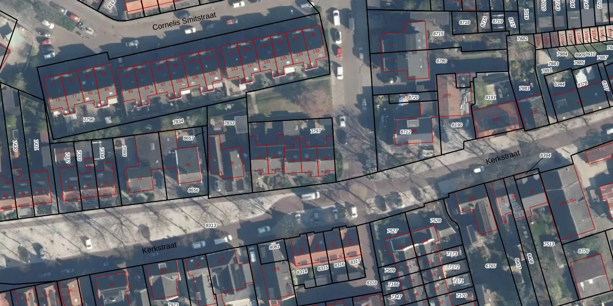 Het perceel waarop Kerkstraat 88 staat heeft een oppervlakte van 600 m². Dit is een groot perceel. De perceeloppervlakte wordt geregistreerd door het Kadaster. Gedetailleerde informatie over de maten van dit perceel kunt u vinden in het rapport Kadastrale kaart met maatvoering van Kerkstraat 88.
