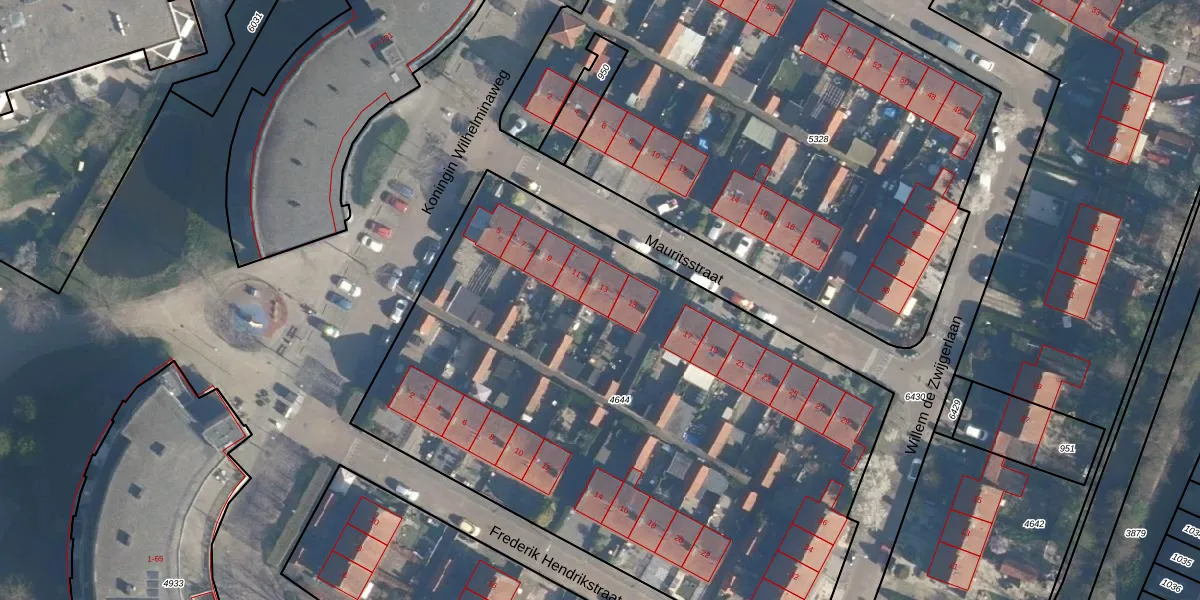Mauritsstraat 13 is gelegen op kadastraal perceel ABS01C4644. Deze kadastrale aanduiding is uniek en wordt gebruikt door het Kadaster om eigendomsrechten en andere zakelijke rechten vast te leggen. Het perceel maakt onderdeel uit van de kadastrale gemeente Alblasserdam.