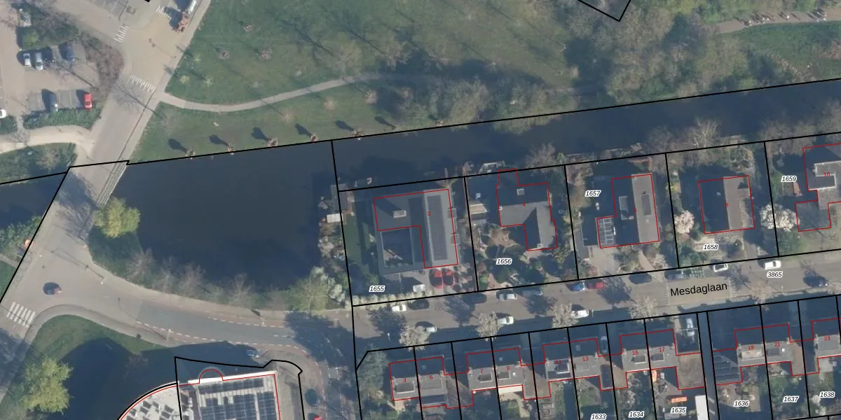 Het perceel waarop Mesdaglaan 2 staat heeft een oppervlakte van 827 m². Dit is een groot perceel. De perceeloppervlakte wordt geregistreerd door het Kadaster. Gedetailleerde informatie over de maten van dit perceel kunt u vinden in het rapport Kadastrale kaart met maatvoering van Mesdaglaan 2.