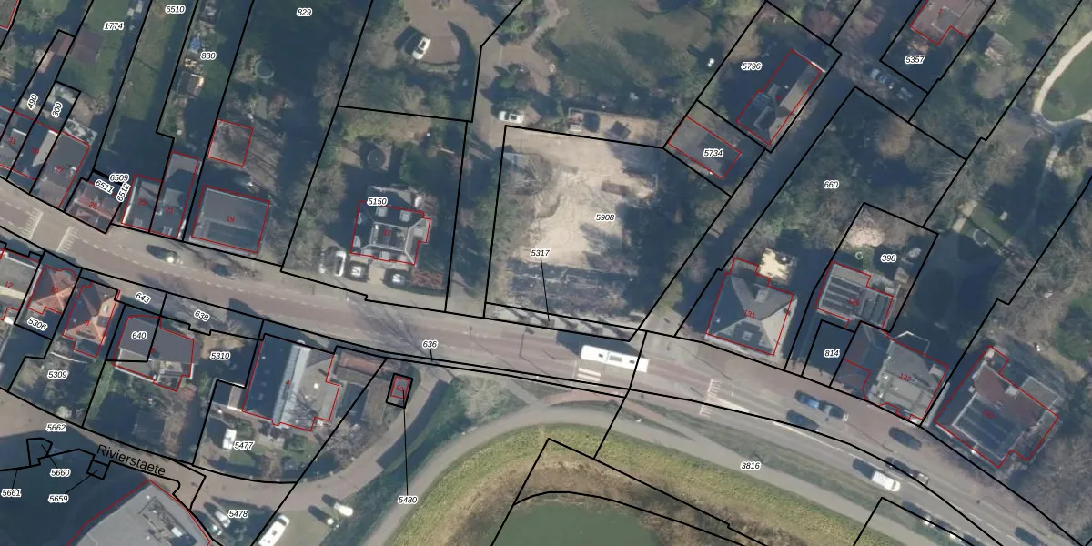 Oost Kinderdijk 5-b is gelegen op kadastraal perceel ABS01C5908. Deze kadastrale aanduiding is uniek en wordt gebruikt door het Kadaster om eigendomsrechten en andere zakelijke rechten vast te leggen. Het perceel maakt onderdeel uit van de kadastrale gemeente Alblasserdam.