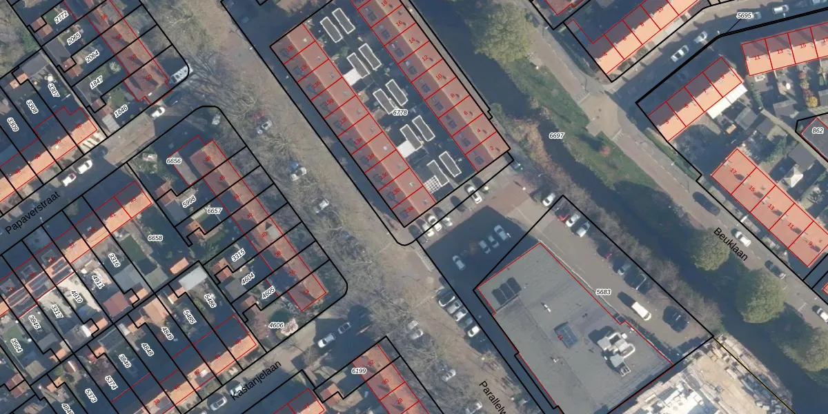 Parallelweg 13-a is gelegen op kadastraal perceel ABS01C6778. Deze kadastrale aanduiding is uniek en wordt gebruikt door het Kadaster om eigendomsrechten en andere zakelijke rechten vast te leggen. Het perceel maakt onderdeel uit van de kadastrale gemeente Alblasserdam.