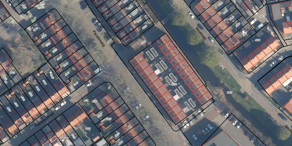 Parallelweg 13-h is gelegen op kadastraal perceel ABS01C6778. Deze kadastrale aanduiding is uniek en wordt gebruikt door het Kadaster om eigendomsrechten en andere zakelijke rechten vast te leggen. Het perceel maakt onderdeel uit van de kadastrale gemeente Alblasserdam.