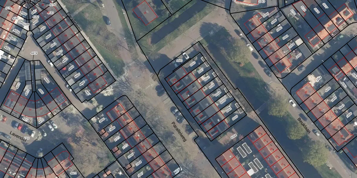 Parallelweg 13-w is gelegen op kadastraal perceel ABS01C6557. Deze kadastrale aanduiding is uniek en wordt gebruikt door het Kadaster om eigendomsrechten en andere zakelijke rechten vast te leggen. Het perceel maakt onderdeel uit van de kadastrale gemeente Alblasserdam.