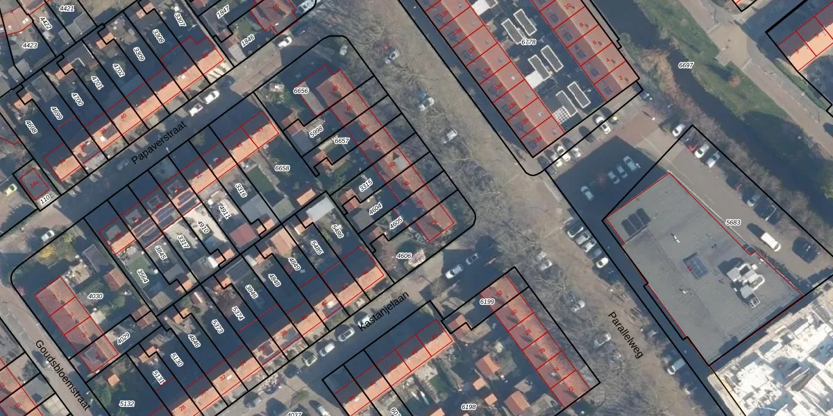 Het perceel waarop Parallelweg 36 staat heeft een oppervlakte van 142 m². Dit is een middelgroot perceel. De perceeloppervlakte wordt geregistreerd door het Kadaster. Gedetailleerde informatie over de maten van dit perceel kunt u vinden in het rapport Kadastrale kaart met maatvoering van Parallelweg 36.