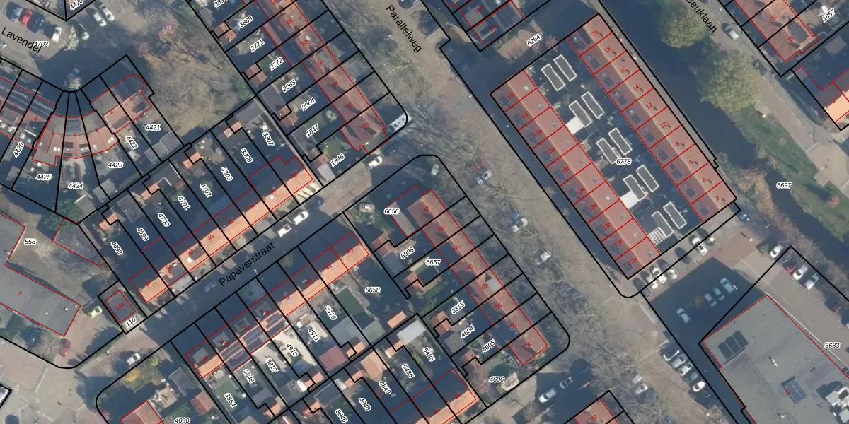 Parallelweg 48 is gelegen op kadastraal perceel ABS01C6656. Deze kadastrale aanduiding is uniek en wordt gebruikt door het Kadaster om eigendomsrechten en andere zakelijke rechten vast te leggen. Het perceel maakt onderdeel uit van de kadastrale gemeente Alblasserdam.