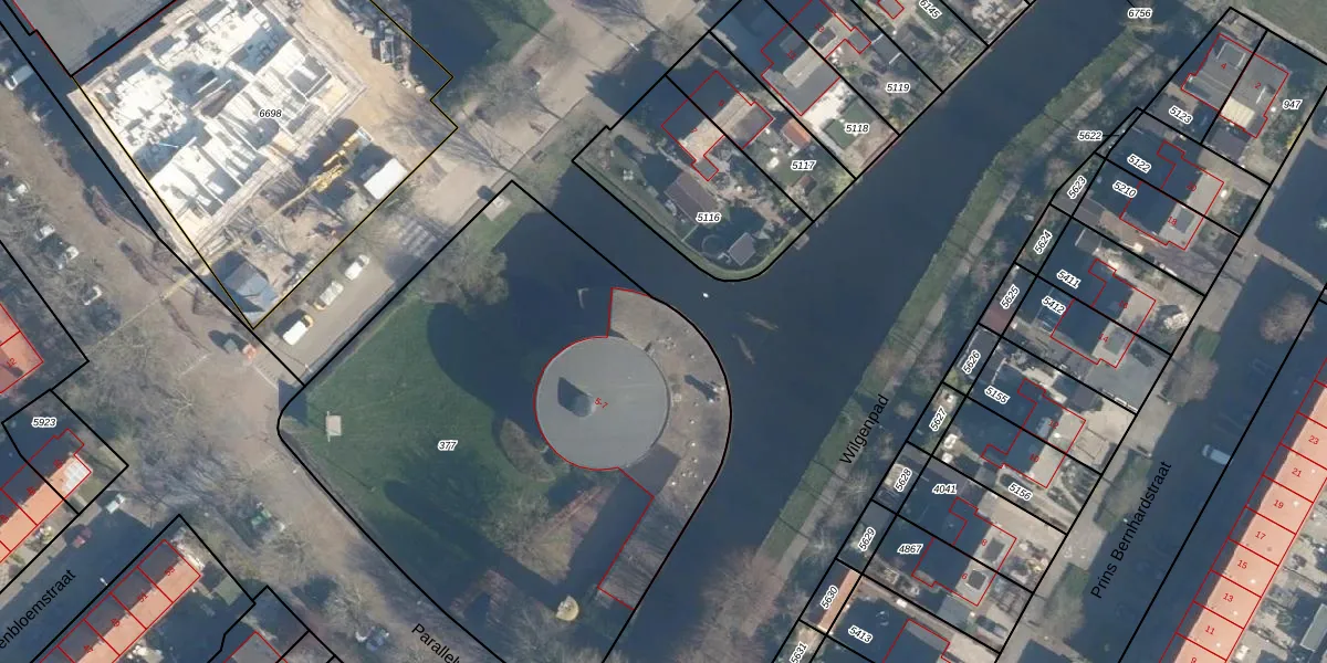 Het perceel waarop Parallelweg 5-K staat heeft een oppervlakte van 3126 m². Dit is een zeer groot perceel. De perceeloppervlakte wordt geregistreerd door het Kadaster. Gedetailleerde informatie over de maten van dit perceel kunt u vinden in het rapport Kadastrale kaart met maatvoering van Parallelweg 5-K.