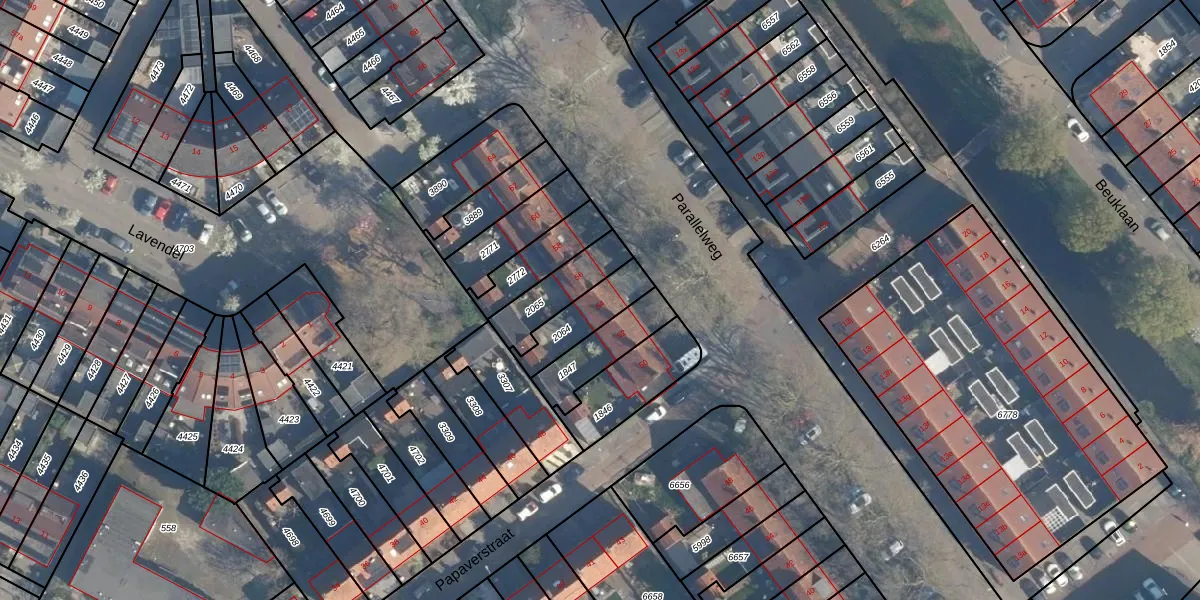 Gebruik de zoekbalk of klik op een perceel voor informatie over de adressen binnen dit perceel.