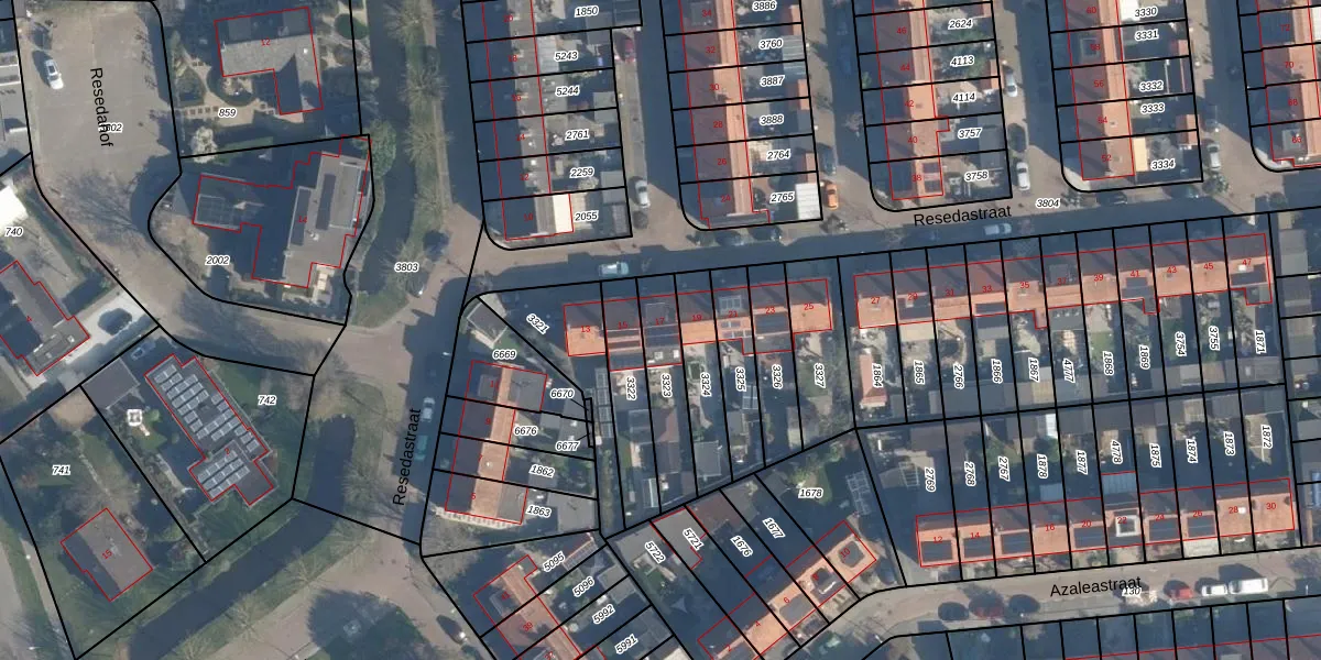 Het perceel waarop Resedastraat 17 staat heeft een oppervlakte van 196 m². Dit is een middelgroot perceel. De perceeloppervlakte wordt geregistreerd door het Kadaster. Gedetailleerde informatie over de maten van dit perceel kunt u vinden in het rapport Kadastrale kaart met maatvoering van Resedastraat 17.