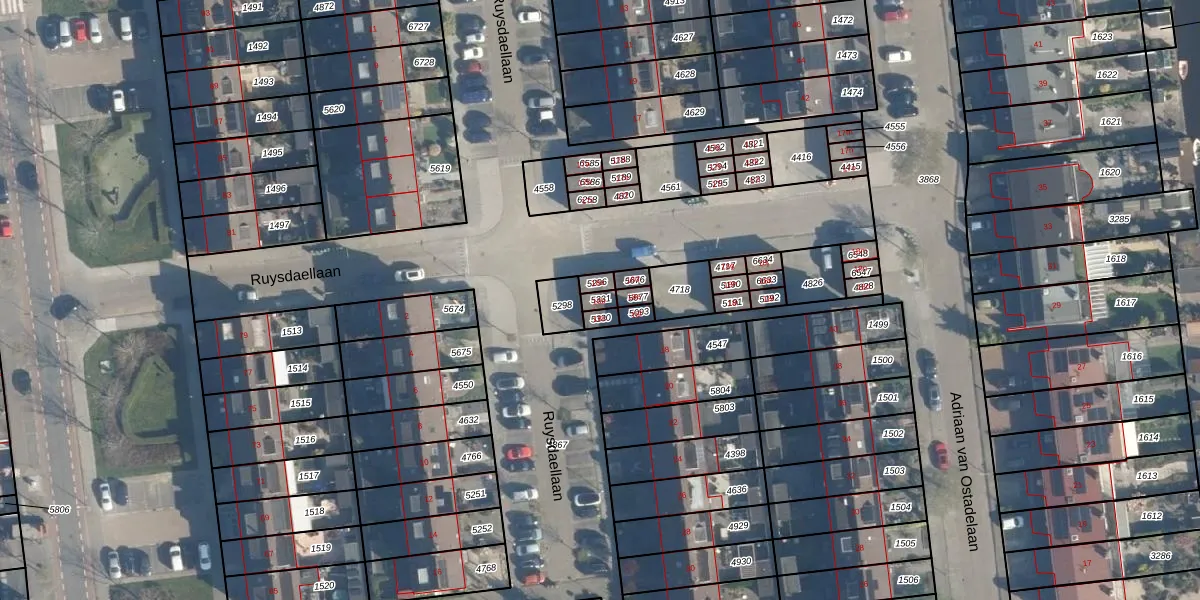 Het perceel waarop Ruysdaellaan 18-b staat heeft een oppervlakte van 18 m². Dit is een klein perceel. De perceeloppervlakte wordt geregistreerd door het Kadaster. Gedetailleerde informatie over de maten van dit perceel kunt u vinden in het rapport Kadastrale kaart met maatvoering van Ruysdaellaan 18-b.