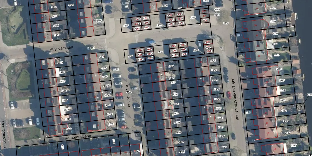 Ruysdaellaan 20 is gelegen op kadastraal perceel ABS01C5804. Deze kadastrale aanduiding is uniek en wordt gebruikt door het Kadaster om eigendomsrechten en andere zakelijke rechten vast te leggen. Het perceel maakt onderdeel uit van de kadastrale gemeente Alblasserdam.