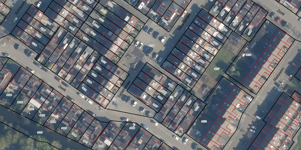 Het perceel waarop Salamander 7 staat heeft een oppervlakte van 169 m². Dit is een middelgroot perceel. De perceeloppervlakte wordt geregistreerd door het Kadaster. Gedetailleerde informatie over de maten van dit perceel kunt u vinden in het rapport Kadastrale kaart met maatvoering van Salamander 7.