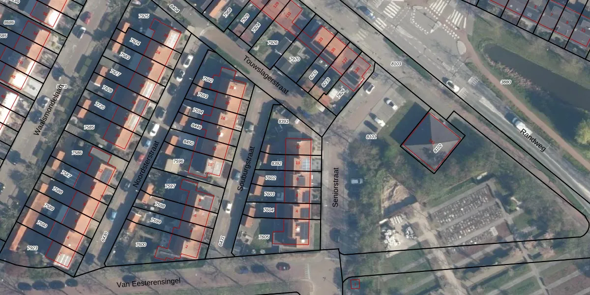 Seniorstraat 12 is gelegen op kadastraal perceel ABS01A8391. Deze kadastrale aanduiding is uniek en wordt gebruikt door het Kadaster om eigendomsrechten en andere zakelijke rechten vast te leggen. Het perceel maakt onderdeel uit van de kadastrale gemeente Alblasserdam.