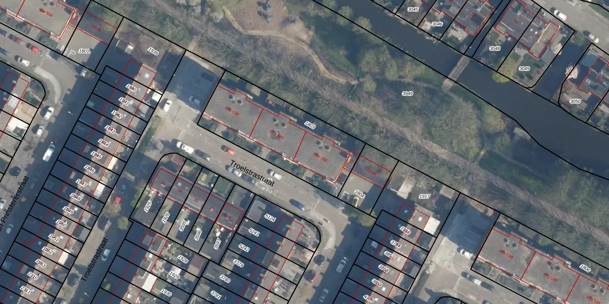 Het perceel waarop Troelstrastraat 55-c staat heeft een oppervlakte van 1067 m². Dit is een zeer groot perceel. De perceeloppervlakte wordt geregistreerd door het Kadaster. Gedetailleerde informatie over de maten van dit perceel kunt u vinden in het rapport Kadastrale kaart met maatvoering van Troelstrastraat 55-c.
