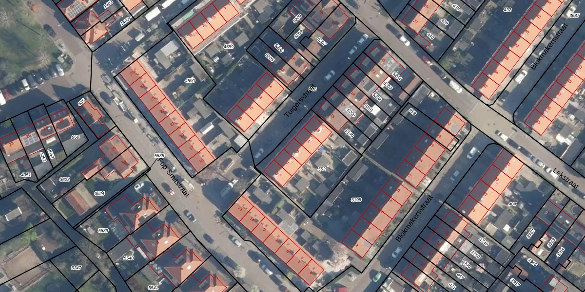 Het perceel waarop Tuigersstraat 9 staat heeft een oppervlakte van 674 m². Dit is een groot perceel. De perceeloppervlakte wordt geregistreerd door het Kadaster. Gedetailleerde informatie over de maten van dit perceel kunt u vinden in het rapport Kadastrale kaart met maatvoering van Tuigersstraat 9.