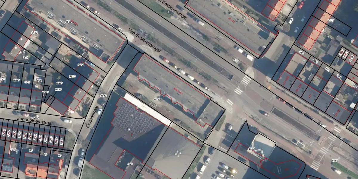 Van Eesterensingel 100-b is gelegen op kadastraal perceel ABS01C4838. Deze kadastrale aanduiding is uniek en wordt gebruikt door het Kadaster om eigendomsrechten en andere zakelijke rechten vast te leggen. Het perceel maakt onderdeel uit van de kadastrale gemeente Alblasserdam.