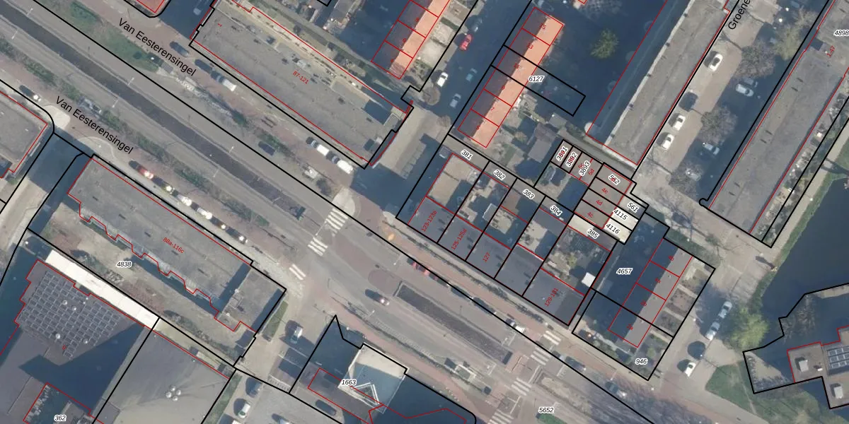 Van Eesterensingel 123-a is gelegen op kadastraal perceel ABS01C381. Deze kadastrale aanduiding is uniek en wordt gebruikt door het Kadaster om eigendomsrechten en andere zakelijke rechten vast te leggen. Het perceel maakt onderdeel uit van de kadastrale gemeente Alblasserdam.