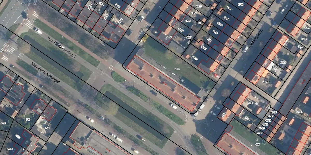 Van Eesterensingel 23 is gelegen op kadastraal perceel ABS01C2861. Deze kadastrale aanduiding is uniek en wordt gebruikt door het Kadaster om eigendomsrechten en andere zakelijke rechten vast te leggen. Het perceel maakt onderdeel uit van de kadastrale gemeente Alblasserdam.