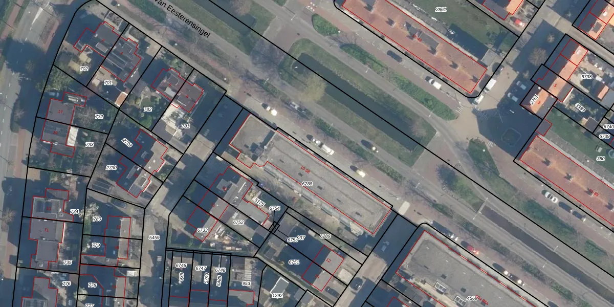 Van Eesterensingel 24 is gelegen op kadastraal perceel ABS01C6288. Deze kadastrale aanduiding is uniek en wordt gebruikt door het Kadaster om eigendomsrechten en andere zakelijke rechten vast te leggen. Het perceel maakt onderdeel uit van de kadastrale gemeente Alblasserdam.