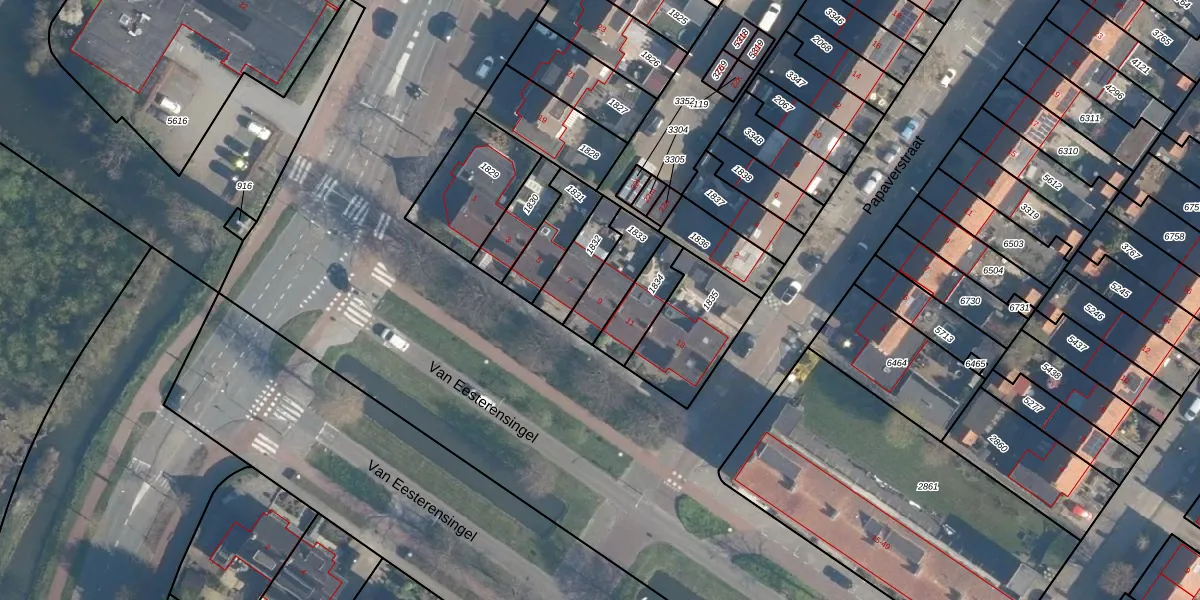Van Eesterensingel 9 is gelegen op kadastraal perceel ABS01C1833. Deze kadastrale aanduiding is uniek en wordt gebruikt door het Kadaster om eigendomsrechten en andere zakelijke rechten vast te leggen. Het perceel maakt onderdeel uit van de kadastrale gemeente Alblasserdam.