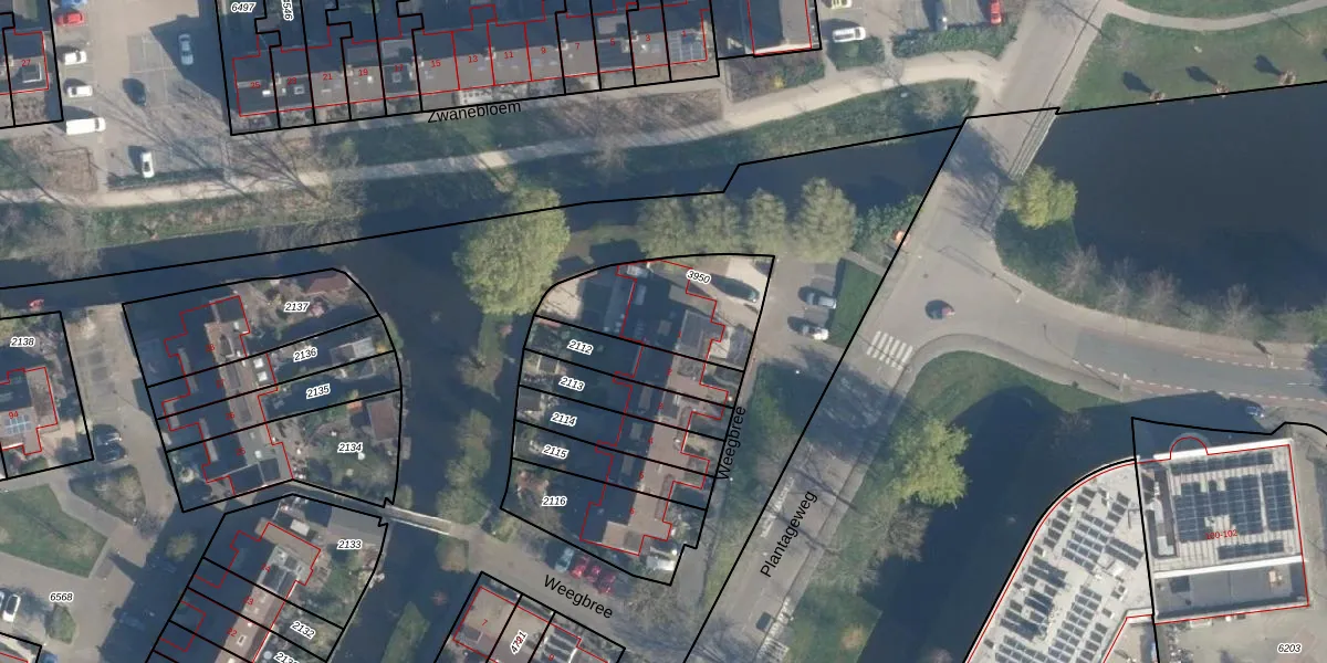 Gebruik de zoekbalk of klik op een perceel voor informatie over de adressen binnen dit perceel.