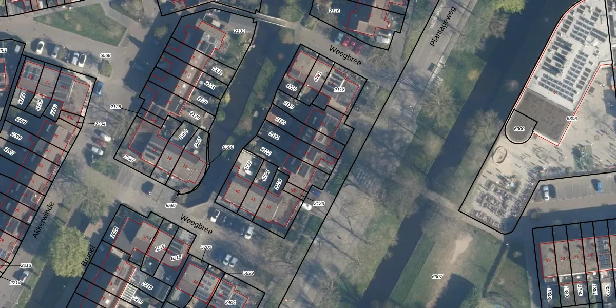 Gebruik de zoekbalk of klik op een perceel voor informatie over de adressen binnen dit perceel.