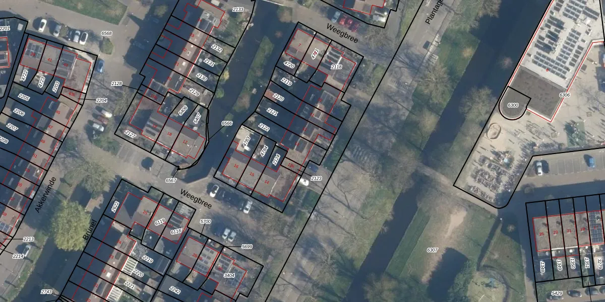 Gebruik de zoekbalk of klik op een perceel voor informatie over de adressen binnen dit perceel.