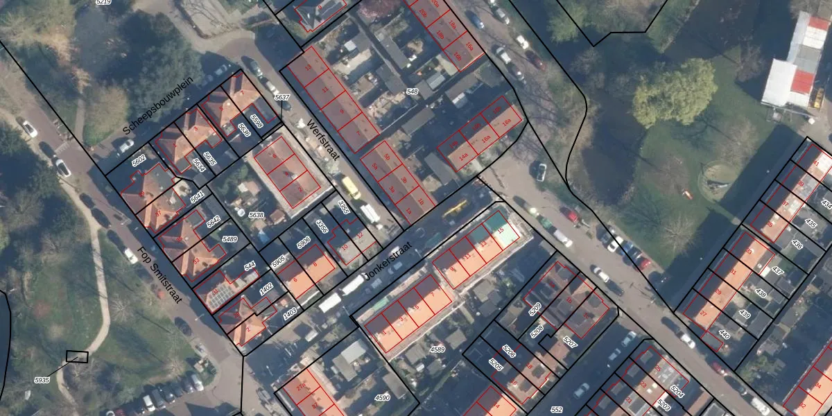 Het perceel waarop Werfstraat 1-a staat heeft een oppervlakte van 2062 m². Dit is een zeer groot perceel. De perceeloppervlakte wordt geregistreerd door het Kadaster. Gedetailleerde informatie over de maten van dit perceel kunt u vinden in het rapport Kadastrale kaart met maatvoering van Werfstraat 1-a.