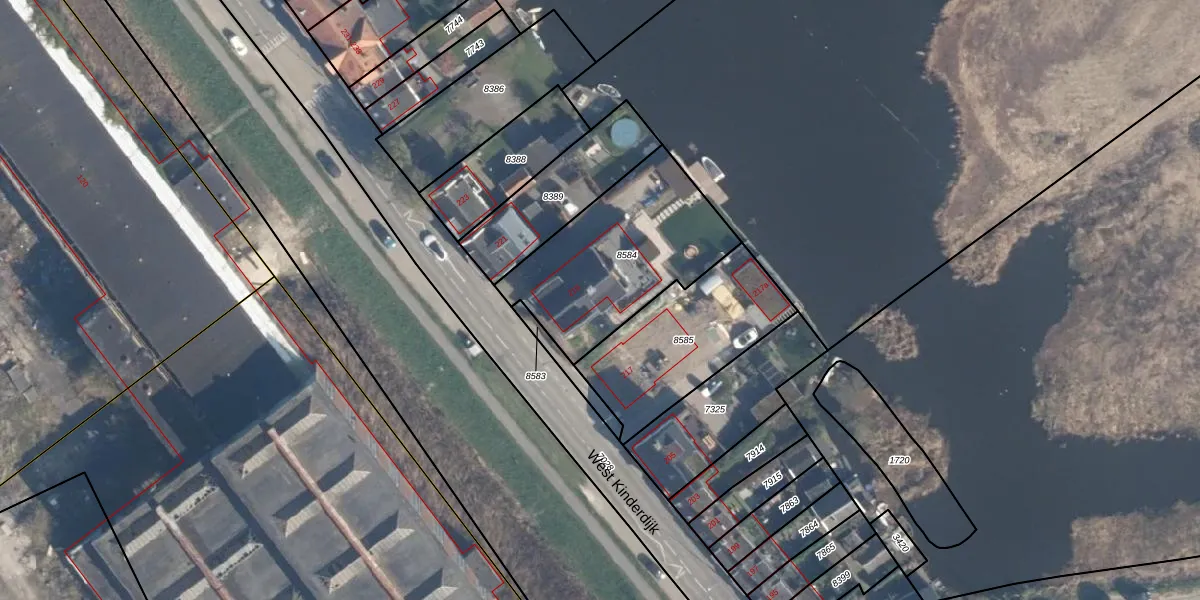 West Kinderdijk 219 is gelegen op kadastraal perceel ABS01A8584. Deze kadastrale aanduiding is uniek en wordt gebruikt door het Kadaster om eigendomsrechten en andere zakelijke rechten vast te leggen. Het perceel maakt onderdeel uit van de kadastrale gemeente Alblasserdam.