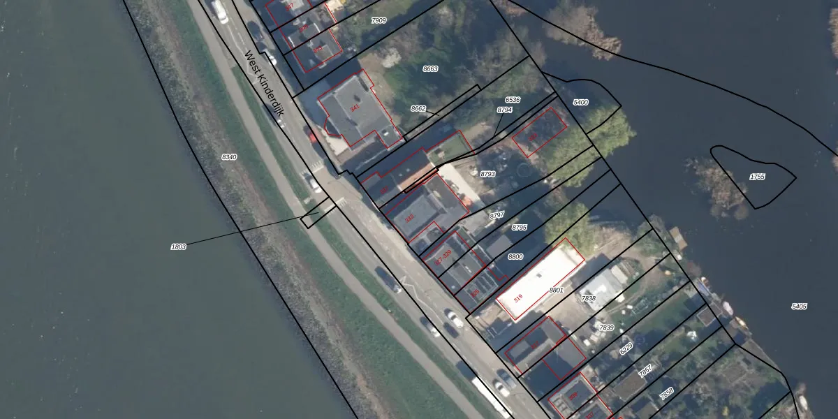 West Kinderdijk 333 is gelegen op kadastraal perceel ABS01A8793. Deze kadastrale aanduiding is uniek en wordt gebruikt door het Kadaster om eigendomsrechten en andere zakelijke rechten vast te leggen. Het perceel maakt onderdeel uit van de kadastrale gemeente Alblasserdam.
