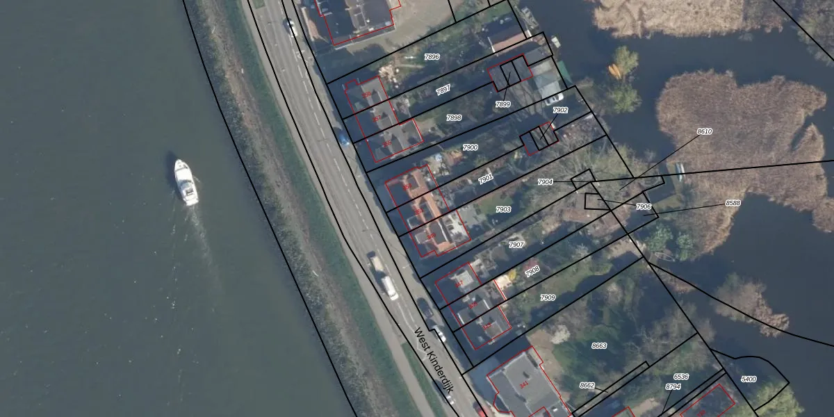 West Kinderdijk 351 is gelegen op kadastraal perceel ABS01A7901. Deze kadastrale aanduiding is uniek en wordt gebruikt door het Kadaster om eigendomsrechten en andere zakelijke rechten vast te leggen. Het perceel maakt onderdeel uit van de kadastrale gemeente Alblasserdam.