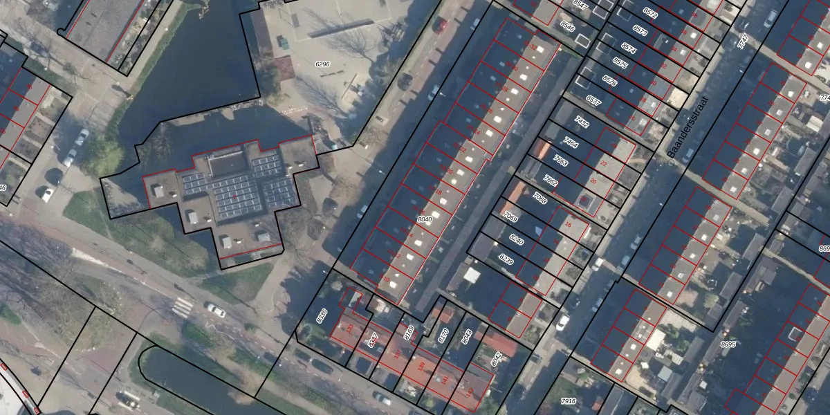 Het adres is gelegen op perceel 8040 in de sectie A en de kadastrale gemeente Alblasserdam. De kadastrale aanduiding is aldus ABS01-A-8040. De oppervlakte van het perceel is 2275 m². Dat is groter dan gemiddeld in Alblasserdam, waar de gemiddelde perceeloppervlakte op 1314,53 m² ligt. Het grootste perceel in de kadastrale gemeente is 19,4 ha. Het kleinste perceel heeft een oppervlakte van 0 m². Er zijn 26 adressen aanwezig op het perceel. In de Basisregistratie Kadaster (BRK) werden de grenzen van het perceel geregistreerd op 12-03-2026.