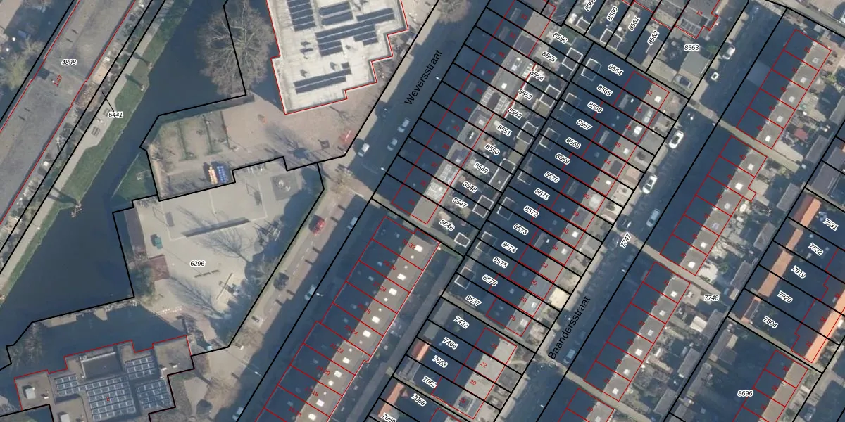 Het perceel waarop Weversstraat 33 staat heeft een oppervlakte van 185 m². Dit is een middelgroot perceel. De perceeloppervlakte wordt geregistreerd door het Kadaster. Gedetailleerde informatie over de maten van dit perceel kunt u vinden in het rapport Kadastrale kaart met maatvoering van Weversstraat 33.