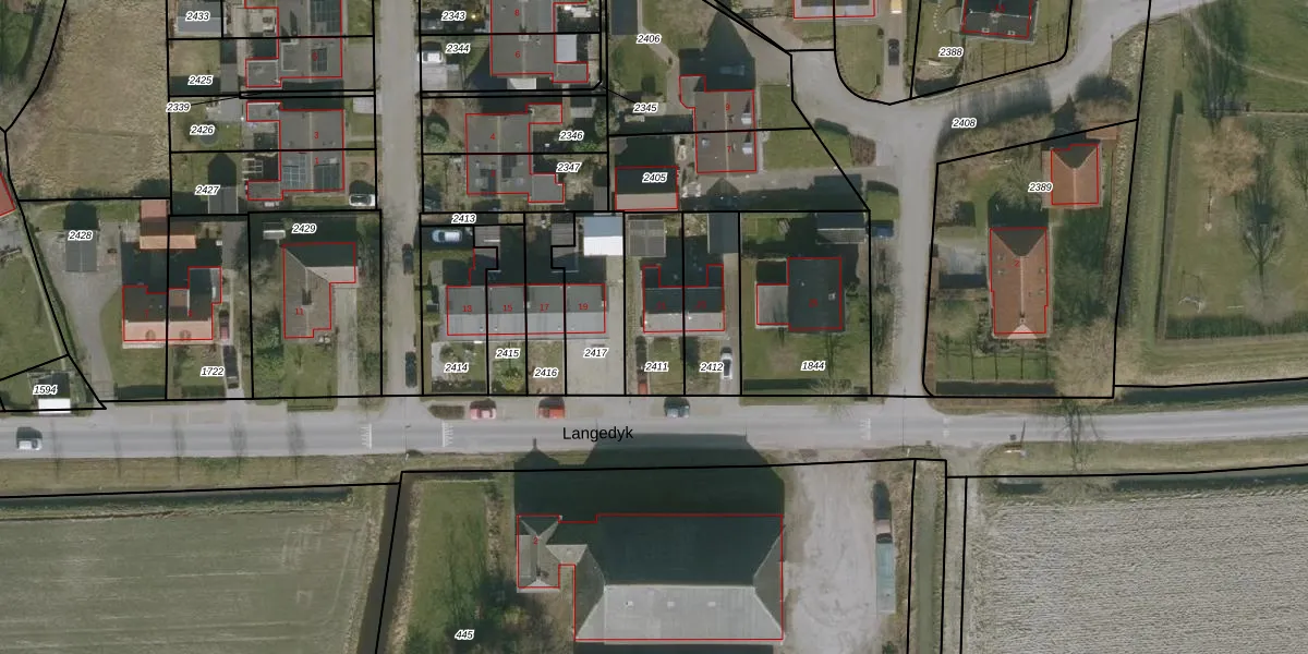 Het perceel waarop Langedyk 21 staat heeft een oppervlakte van 255 m². Dit is een middelgroot perceel. De perceeloppervlakte wordt geregistreerd door het Kadaster. Gedetailleerde informatie over de maten van dit perceel kunt u vinden in het rapport Kadastrale kaart met maatvoering van Langedyk 21.
