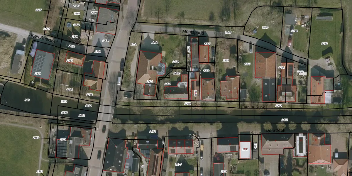 Gebruik de zoekbalk of klik op een perceel voor informatie over de adressen binnen dit perceel.