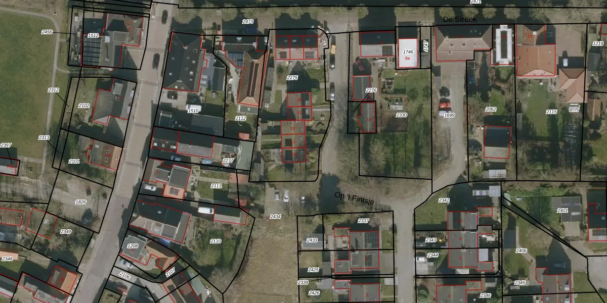 Het perceel waarop Op 't Fintsje 15 staat heeft een oppervlakte van 1090 m². Dit is een zeer groot perceel. De perceeloppervlakte wordt geregistreerd door het Kadaster. Gedetailleerde informatie over de maten van dit perceel kunt u vinden in het rapport Kadastrale kaart met maatvoering van Op 't Fintsje 15.